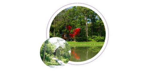 湖的周邊錯(cuò)落有致地坐落著十幾幢別墅式的小木屋,中式的、韓式的、歐式的,古樸雅致,造型各異。它們的屋頂全部用紅色彩板瓦裝飾著,掩映在蓊郁的樹木之間,斑斑點(diǎn)點(diǎn)的紅,便有了濃妝淡抹的味道。